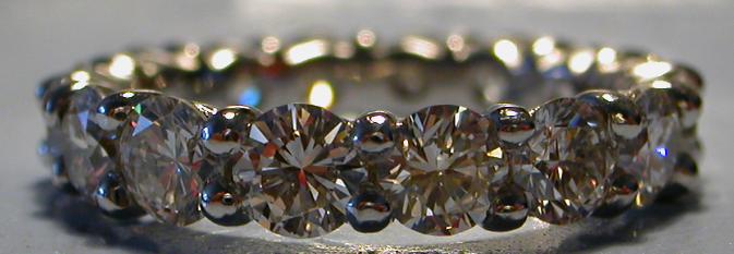 Handmade diamond full eternity ring in Ruthenium Platinum. Set with 16 x 4mm diamonds approximately 24 pts each stone totalling approx 3.84 carats.